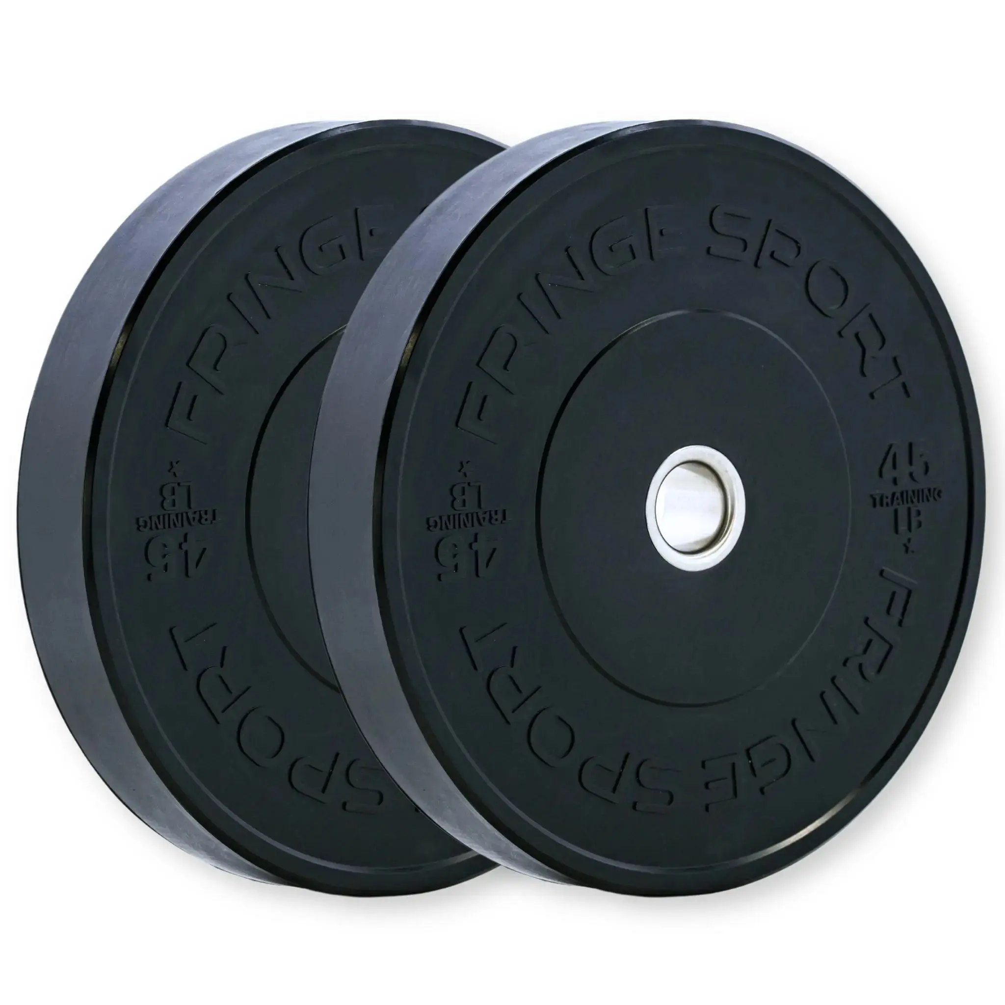 Most Fringe Sport bumper plates are the IWF standard 450mm (~17.7\") width in diameter, with a +/-1.5mm variance